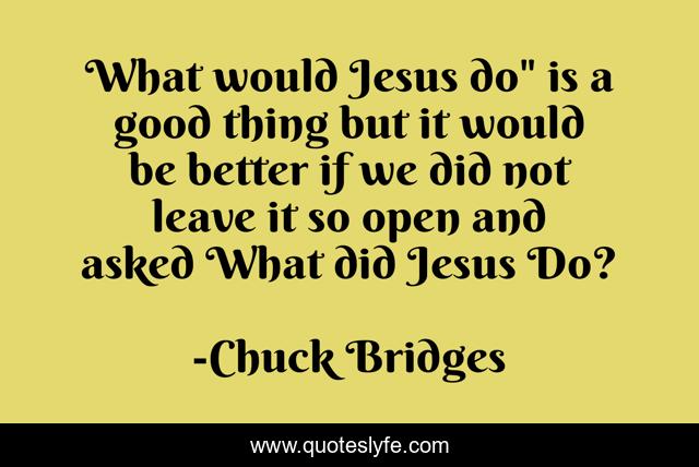 This page presents the quote "What would Jesus do" is a good thing but it would be better if we did not leave it so open and asked What did Jesus Do?". Author of this quote is Chuck Bridges. This quote is about wwjd, example, jesus,.