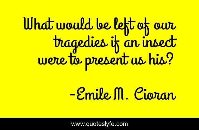 This page presents the quote "What would be left of our tragedies if an insect were to present us his?". Author of this quote is Emile M. Cioran. This quote is about present, us, left,.