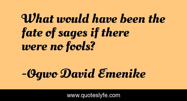 This page presents the quote "What would have been the fate of sages if there were no fools?". Author of this quote is Ogwo David Emenike. This quote is about fool, humor, sage, inspirational, enthusiasm,.