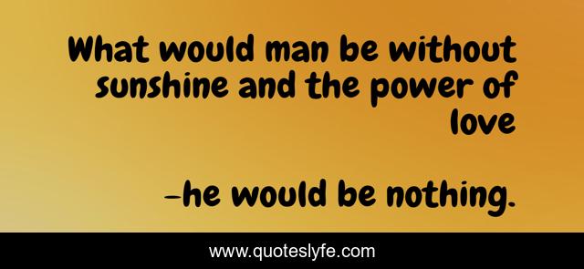 This page presents the quote "What would man be without sunshine and the power of love". Author of this quote is he would be nothing.. .