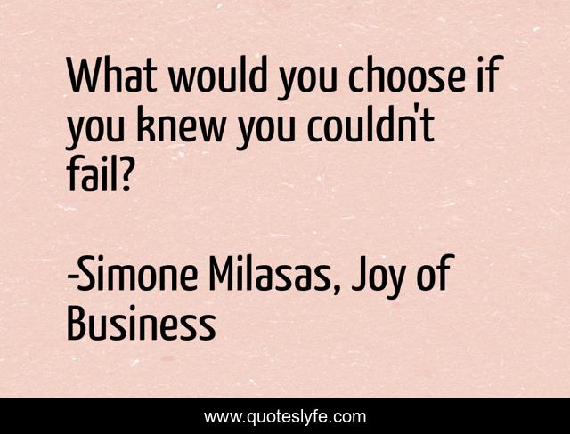 This page presents the quote "What would you choose if you knew you couldn't fail?". Author of this quote is Simone Milasas, Joy of Business. This quote is about life-inspirational, money-management, business, success,.
