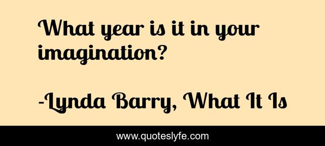 "Lynda Barry, What It Is Quotes." Quoteslyfe.com, 2025. Sat. 06 Dec. 2025. <https://www.quoteslyfe.com/quote/What-year-is-it-in-your-imagination-125797>.