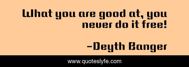 This page presents the quote "What you are good at, you never do it free!". Author of this quote is Deyth Banger. This quote is about good, at, free,.