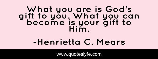 "Henrietta C. Mears Quotes." Quoteslyfe.com, 2025. Mon. 08 Dec. 2025. <https://www.quoteslyfe.com/quote/What-you-are-is-God-s-gift-190126>.