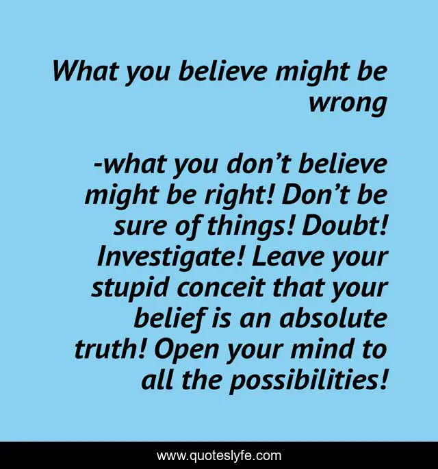 "what you don’t believe might be right! Don’t be sure of things! Doubt! Investigate! Leave your stupid conceit that your belief is an absolute truth! Open your mind to all the possibilities! Quotes." Quoteslyfe.com, 2025. Fri. 05 Dec. 2025. <https://www.quoteslyfe.com/quote/What-you-believe-might-be-wrong-216226>.