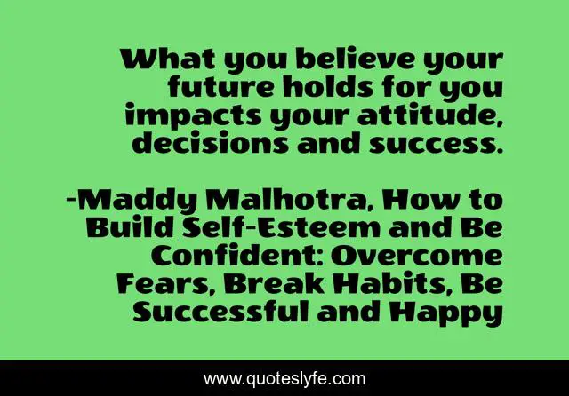"Maddy Malhotra, How to Build Self-Esteem and Be Confident: Overcome Fears, Break Habits, Be Successful and Happy Quotes." Quoteslyfe.com, 2025. Sat. 06 Dec. 2025. <https://www.quoteslyfe.com/quote/What-you-believe-your-future-holds-for-245534>.