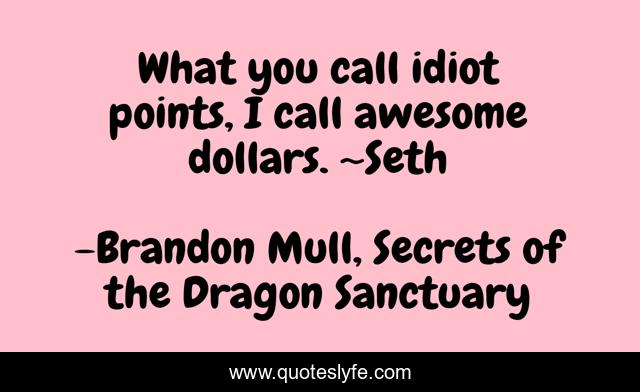 This page presents the quote "What you call idiot points, I call awesome dollars. ~Seth". Author of this quote is Brandon Mull, Secrets of the Dragon Sanctuary. This quote is about comedy, humor,.