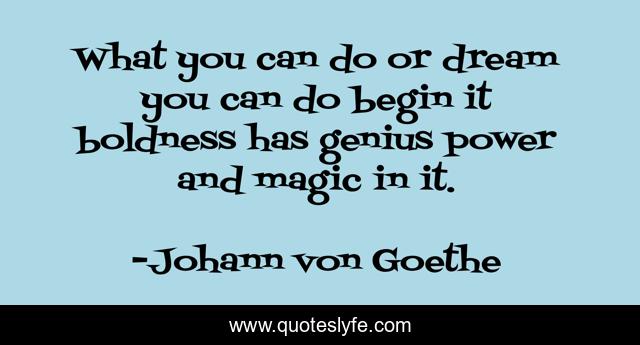 This page presents the quote "What you can do or dream you can do begin it boldness has genius power and magic in it.". Author of this quote is Johann von Goethe. .