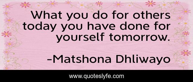 "Matshona Dhliwayo Quotes." Quoteslyfe.com, 2025. Sat. 06 Dec. 2025. <https://www.quoteslyfe.com/quote/What-you-do-for-others-today-you-49954>.