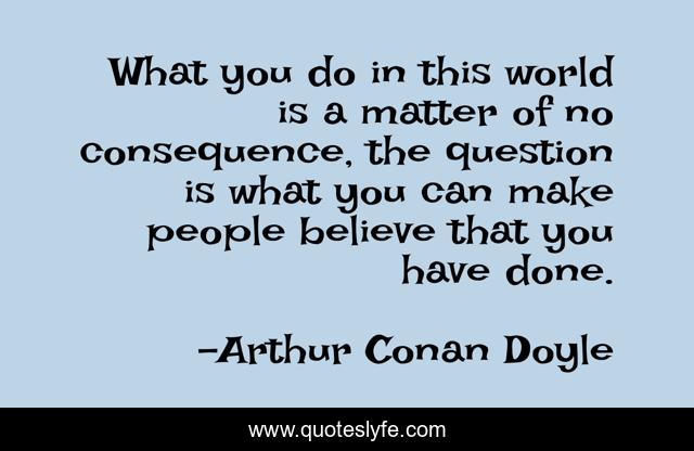 This page presents the quote "What you do in this world is a matter of no consequence, the question is what you can make people believe that you have done.". Author of this quote is Arthur Conan Doyle. This quote is about holmes, life, insightful,.