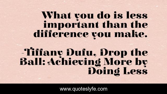 This page presents the quote "What you do is less important than the difference you make.". Author of this quote is Tiffany Dufu, Drop the Ball: Achieving More by Doing Less. This quote is about career, enthusiasm, legacy, family, inspirational,.