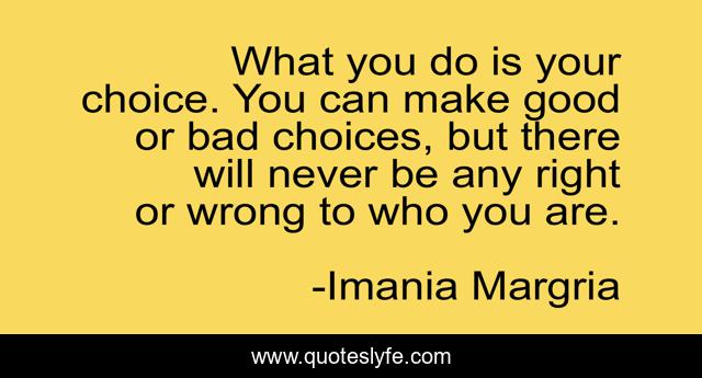 "Imania Margria Quotes." Quoteslyfe.com, 2025. Sat. 06 Dec. 2025. <https://www.quoteslyfe.com/quote/What-you-do-is-your-choice-You-47757>.