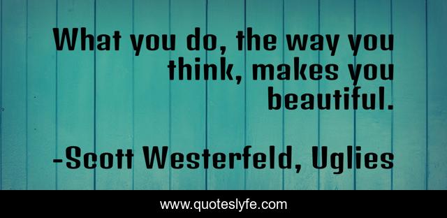 This page presents the quote "What you do, the way you think, makes you beautiful.". Author of this quote is Scott Westerfeld, Uglies. This quote is about westerfeld, uglies, beauty, david,.