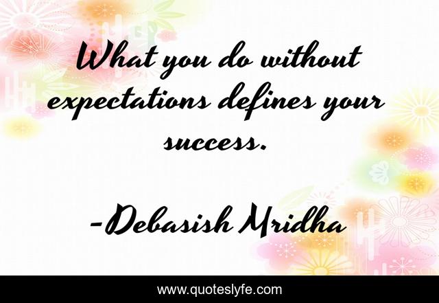 This page presents the quote "What you do without expectations defines your success.". Author of this quote is Debasish Mridha. This quote is about life, love, knowledge, inspirational, intelligence, philosophy, wisdom, quotes, affection,.