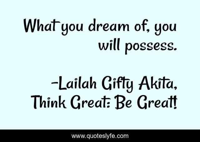"Lailah Gifty Akita, Think Great: Be Great! Quotes." Quoteslyfe.com, 2025. Sat. 06 Dec. 2025. <https://www.quoteslyfe.com/quote/What-you-dream-of-you-will-possess-124081>.