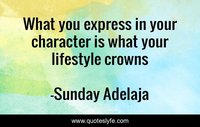 This page presents the quote "What you express in your character is what your lifestyle crowns". Author of this quote is Sunday Adelaja. This quote is about character, express, crown, lifestyle,.