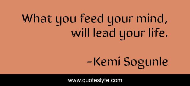 This page presents the quote "What you feed your mind, will lead your life.". Author of this quote is Kemi Sogunle. This quote is about life-coaching, thinking-with-a-great-mind, mindfulness, thinking, mindset-matters, mind, thoughts-of-the-mind, life-coaching-by-kemi-sogunle, growth-mindset,.