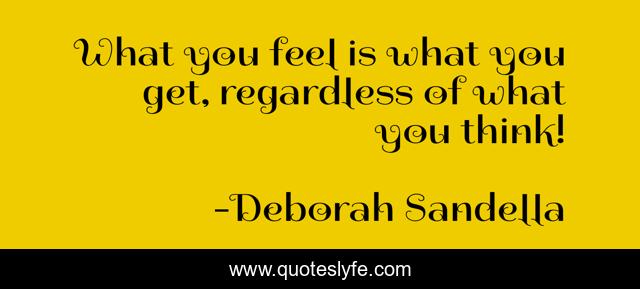 This page presents the quote "What you feel is what you get, regardless of what you think!". Author of this quote is Deborah Sandella. This quote is about wellness, feelings, self-awareness, self-help,.