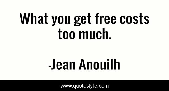 "Jean Anouilh Quotes." Quoteslyfe.com, 2025. Mon. 08 Dec. 2025. <https://www.quoteslyfe.com/quote/What-you-get-free-costs-too-much-270959>.