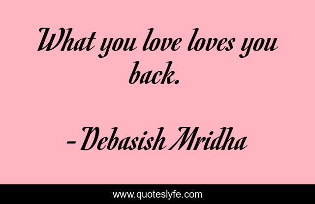 This page presents the quote "What you love loves you back.". Author of this quote is Debasish Mridha. This quote is about what-you-love, love, philosophy, debasish-mridha, quotes, inspirational, loves-you-back, enthusiasm, debasish-mridha-m-d,.