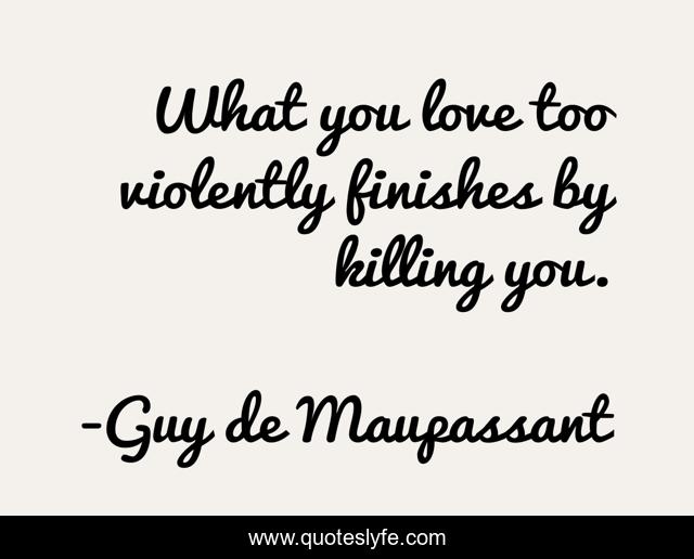 This page presents the quote "What you love too violently finishes by killing you.". Author of this quote is Guy de Maupassant. This quote is about violence, love, affection,.