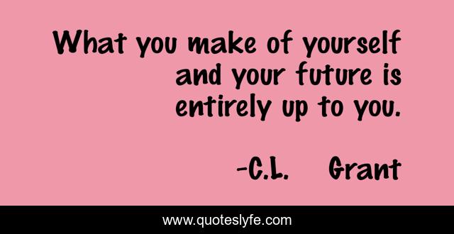 This page presents the quote "What you make of yourself and your future is entirely up to you.". Author of this quote is C.L. Grant. This quote is about self-esteem, self-help, self-improvment,.