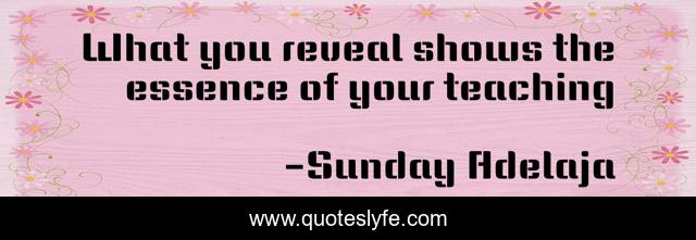 This page presents the quote "What you reveal shows the essence of your teaching". Author of this quote is Sunday Adelaja. This quote is about essence, teaching, reveal, show,.