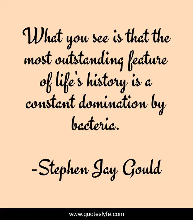 This page presents the quote "What you see is that the most outstanding feature of life's history is a constant domination by bacteria.". Author of this quote is Stephen Jay Gould. This quote is about life, see,.