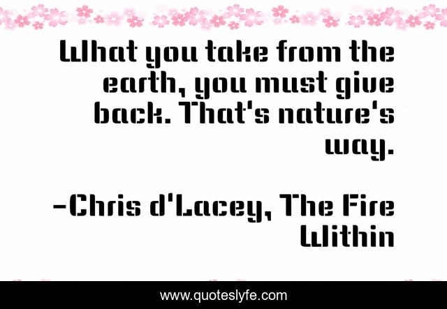 This page presents the quote "What you take from the earth, you must give back. That's nature's way.". Author of this quote is Chris d'Lacey, The Fire Within. .