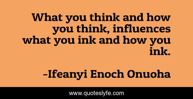 This page presents the quote "What you think and how you think, influences what you ink and how you ink.". Author of this quote is Ifeanyi Enoch Onuoha. This quote is about motivation, hinovelty, wisdom, thought, ifeanyi-enoch-onuoha, book, higherlife, writing,.