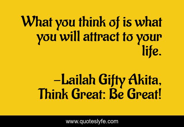 "Lailah Gifty Akita, Think Great: Be Great! Quotes." Quoteslyfe.com, 2025. Sat. 06 Dec. 2025. <https://www.quoteslyfe.com/quote/What-you-think-of-is-what-you-78376>.