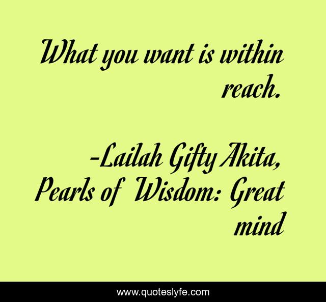 "Lailah Gifty Akita, Pearls of Wisdom: Great mind Quotes." Quoteslyfe.com, 2025. Mon. 15 Dec. 2025. <https://www.quoteslyfe.com/quote/What-you-want-is-within-reach-94835>.