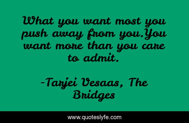 This page presents the quote "What you want most you push away from you.You want more than you care to admit.". Author of this quote is Tarjei Vesaas, The Bridges. .