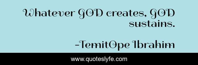 "TemitOpe Ibrahim Quotes." Quoteslyfe.com, 2025. Sat. 06 Dec. 2025. <https://www.quoteslyfe.com/quote/Whatever-GOD-creates-GOD-sustains-38327>.