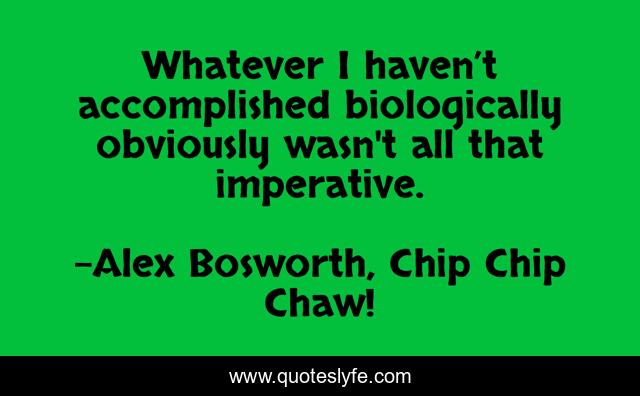 "Alex Bosworth, Chip Chip Chaw! Quotes." Quoteslyfe.com, 2025. Mon. 08 Dec. 2025. <https://www.quoteslyfe.com/quote/Whatever-I-haven-t-accomplished-biologically-obviously-99948>.