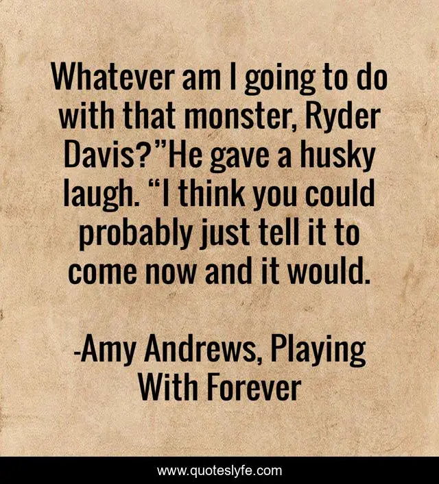 This page presents the quote "Whatever am I going to do with that monster, Ryder Davis?”He gave a husky laugh. “I think you could probably just tell it to come now and it would.". Author of this quote is Amy Andrews, Playing With Forever. This quote is about quotes, amy-andrews, ryder, sydney-smoke-rugby-series, sports-romance,.