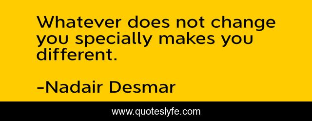 This page presents the quote "Whatever does not change you specially makes you different.". Author of this quote is Nadair Desmar. .
