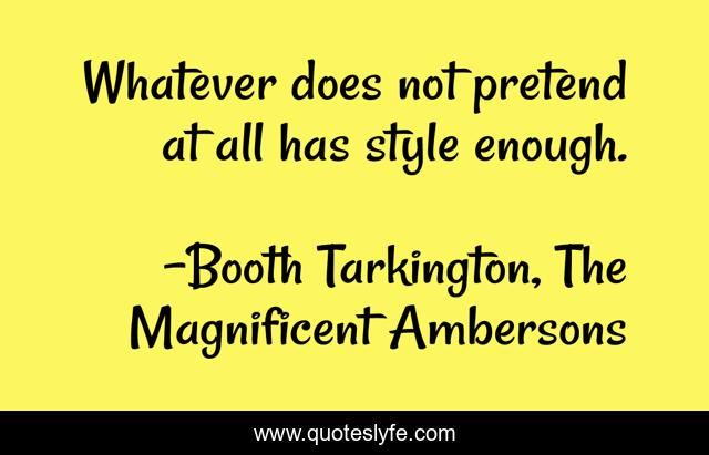 This page presents the quote "Whatever does not pretend at all has style enough.". Author of this quote is Booth Tarkington, The Magnificent Ambersons. This quote is about individuality, integrity, style,.