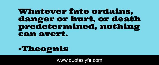 "Theognis Quotes." Quoteslyfe.com, 2025. Sat. 06 Dec. 2025. <https://www.quoteslyfe.com/quote/Whatever-fate-ordains-danger-or-hurt-or-153935>.