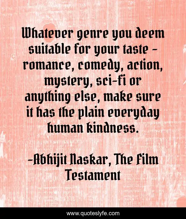 "Abhijit Naskar, The Film Testament Quotes." Quoteslyfe.com, 2025. Mon. 08 Dec. 2025. <https://www.quoteslyfe.com/quote/Whatever-genre-you-deem-suitable-for-your-13702>.