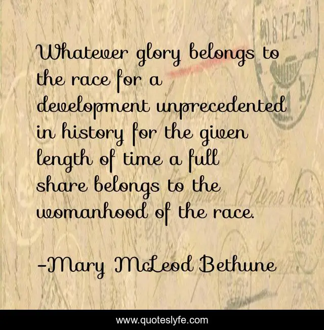 "Mary McLeod Bethune Quotes." Quoteslyfe.com, 2025. Tue. 09 Dec. 2025. <https://www.quoteslyfe.com/quote/Whatever-glory-belongs-to-the-race-for-276023>.