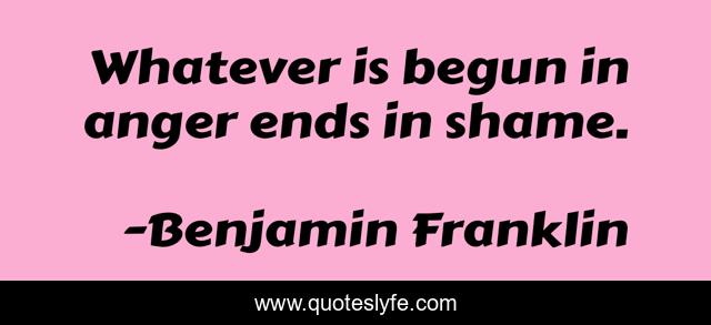 This page presents the quote "Whatever is begun in anger ends in shame.". Author of this quote is Benjamin Franklin. This quote is about shame, ends, whatever,.