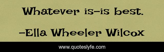 This page presents the quote "Whatever is-is best.". Author of this quote is Ella Wheeler Wilcox. .
