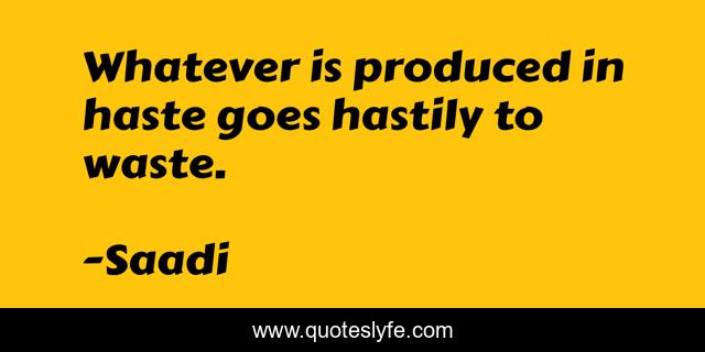 This page presents the quote "Whatever is produced in haste goes hastily to waste.". Author of this quote is Saadi. This quote is about critics, poem, literature, progress,.
