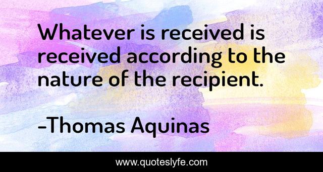 This page presents the quote "Whatever is received is received according to the nature of the recipient.". Author of this quote is Thomas Aquinas. This quote is about recipient, whatever,.