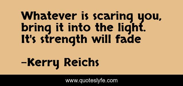 This page presents the quote "Whatever is scaring you, bring it into the light. It's strength will fade". Author of this quote is Kerry Reichs. This quote is about leaving-unknown, novel,.