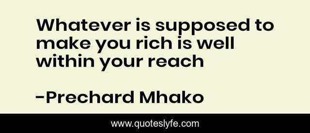 This page presents the quote "Whatever is supposed to make you rich is well within your reach". Author of this quote is Prechard Mhako. This quote is about confidence, rich, business, positive, motivational, optimistic, inspirational, enthusiasm, wealth,.