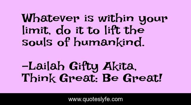 "Lailah Gifty Akita, Think Great: Be Great! Quotes." Quoteslyfe.com, 2025. Fri. 05 Dec. 2025. <https://www.quoteslyfe.com/quote/Whatever-is-within-your-limit-do-it-62495>.