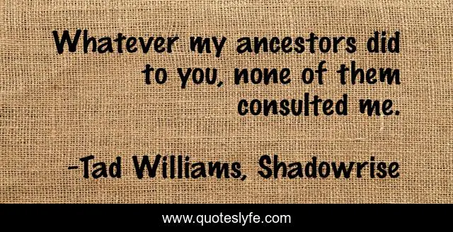 "Tad Williams, Shadowrise Quotes." Quoteslyfe.com, 2025. Fri. 05 Dec. 2025. <https://www.quoteslyfe.com/quote/Whatever-my-ancestors-did-to-you-none-40997>.
