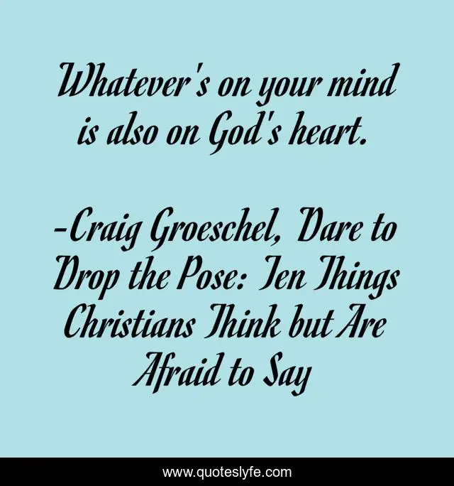 "Craig Groeschel, Dare to Drop the Pose: Ten Things Christians Think but Are Afraid to Say Quotes." Quoteslyfe.com, 2025. Fri. 05 Dec. 2025. <https://www.quoteslyfe.com/quote/Whatever-s-on-your-mind-is-also-80990>.